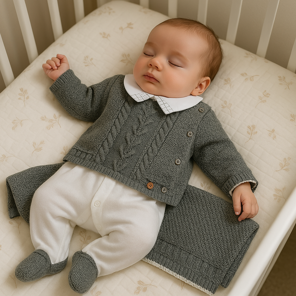 A manta traz aconchego. A roupinha, com detalhes delicados e toque macio, envolve como um carinho. Ideal para presentear ou eternizar o momento da saída da maternidade com ternura e presença.