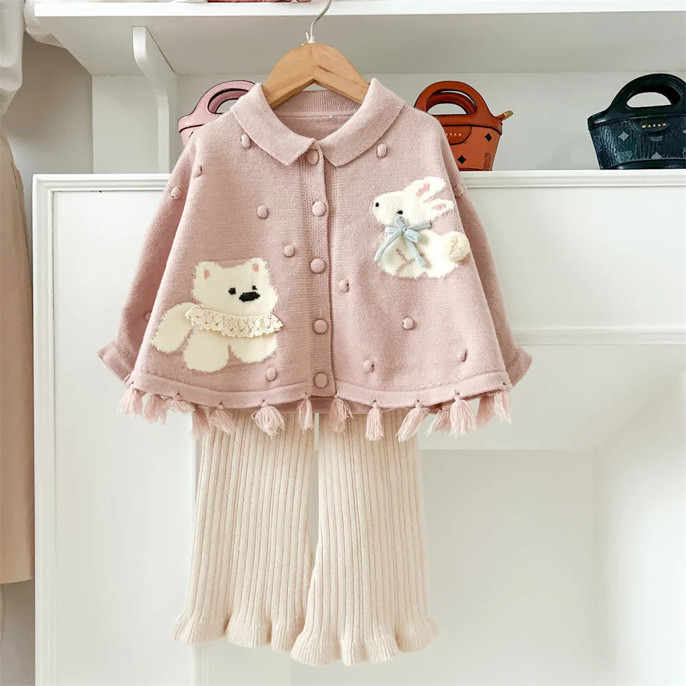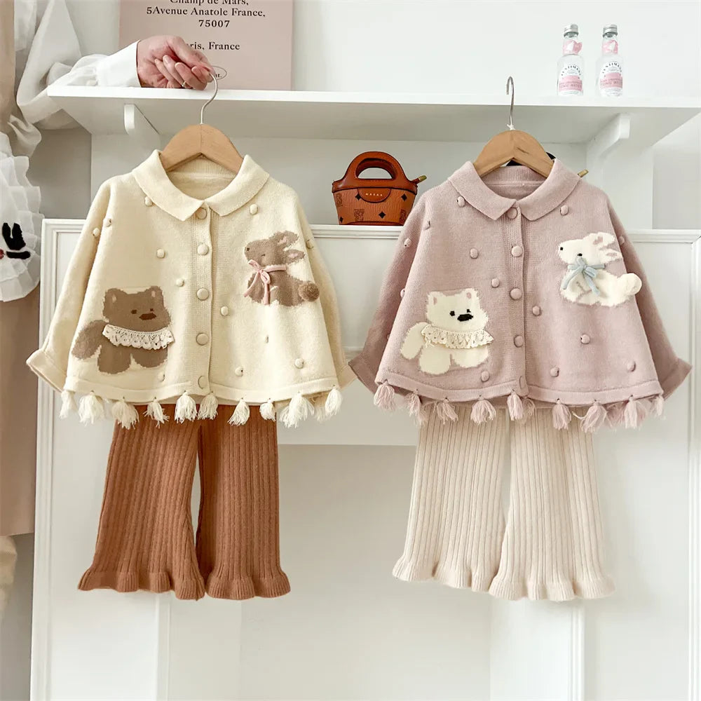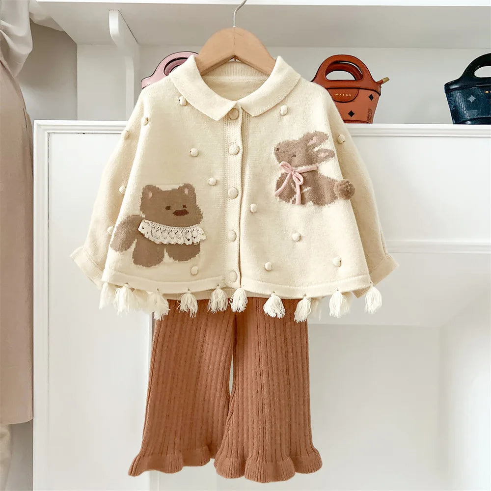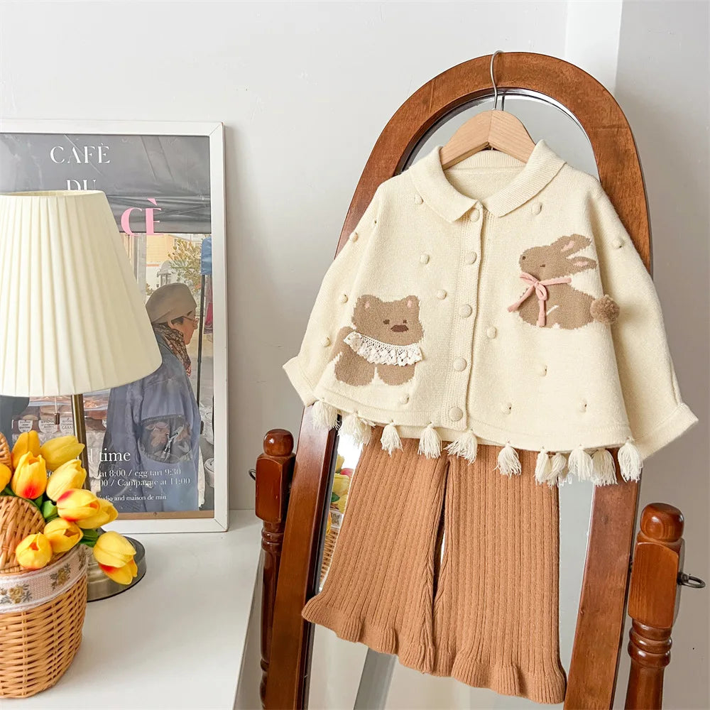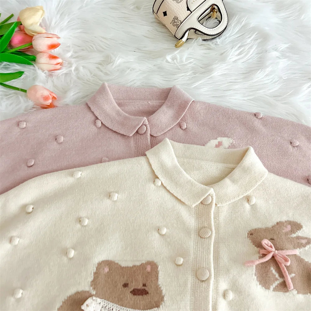 🐰 Casaquinho encantador: Nas cores bege e rosa, com uma adorável estampa de cachorrinho e coelho, trazendo um ar brincalhão e fofo. A parte inferior é decorada com rendinhas delicadas, dando um toque especial ao look.