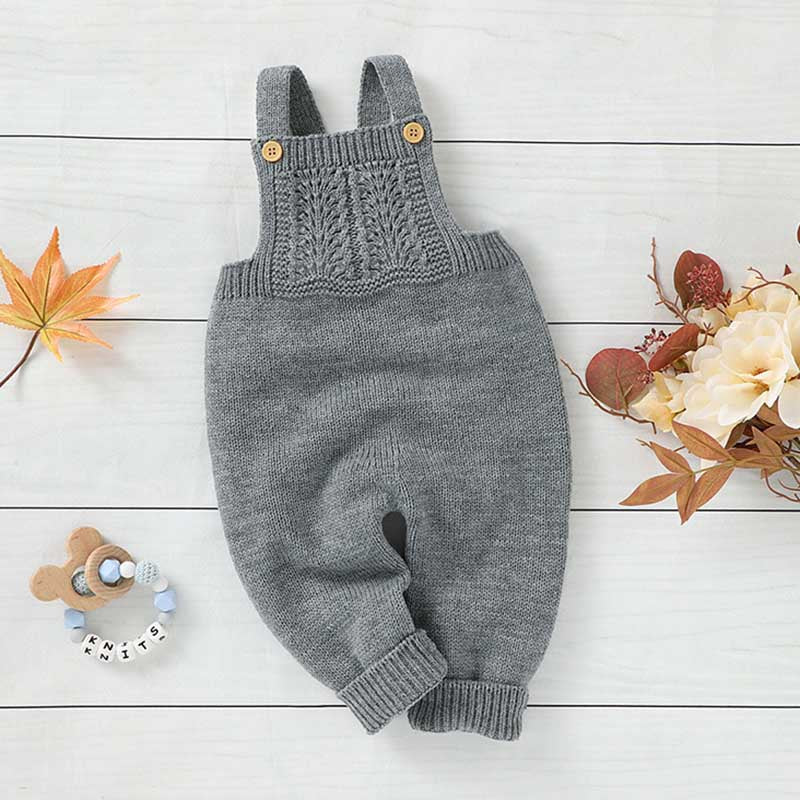 Vista seu bebê com o charme rústico e o conforto suave desta jardineira infantil de tricot, perfeita para dias frescos e looks cheios de fofura! Confeccionada em lã macia e respirável, nas cores cinza e bege, esta peça versátil combina com diversas camadas e é ideal para recém-nascidos até 3 anos.