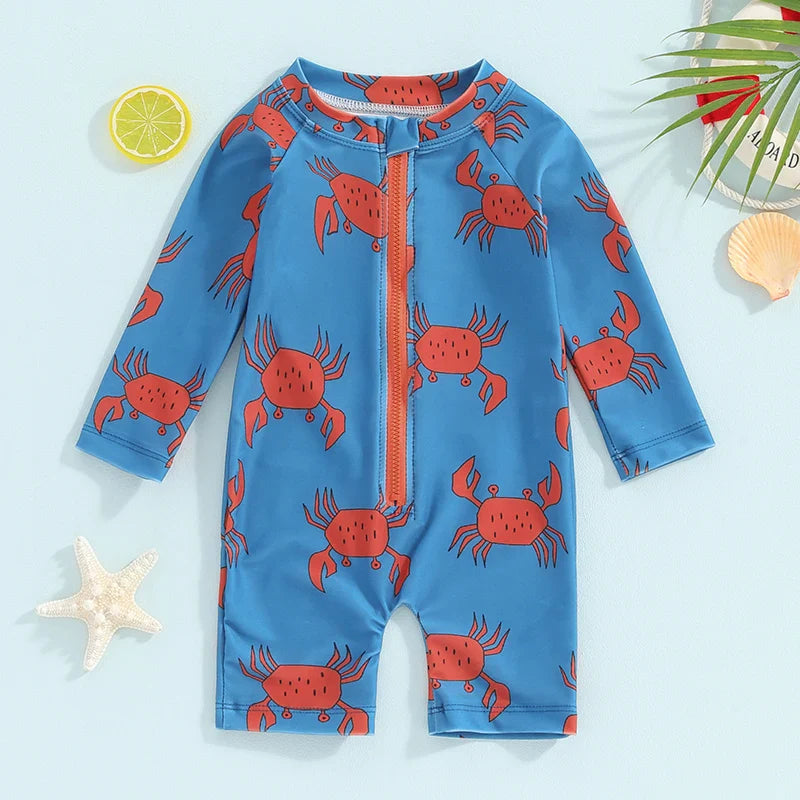 Imagine seu pequeno explorando o mundo com os olhinhos brilhando, os pezinhos na areia e o coração cheio de alegria. Com nosso Macacão de Banho Marinho, cada mergulho se transforma em uma nova aventura, repleta de cor, proteção e carinho.
