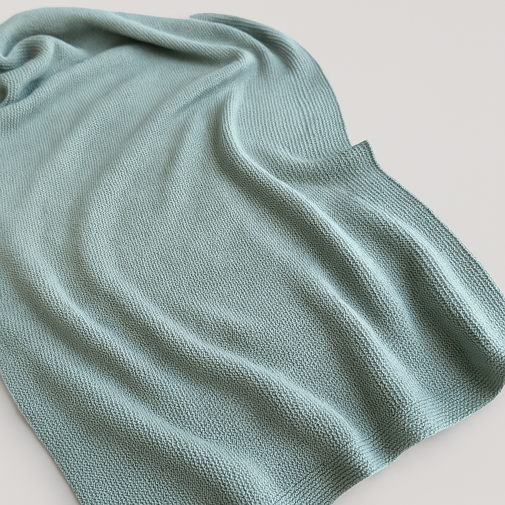 O tom verde suave transmite serenidade, enquanto a textura do tricot oferece conforto e proteção para esse novo comecinho cheio de amor.