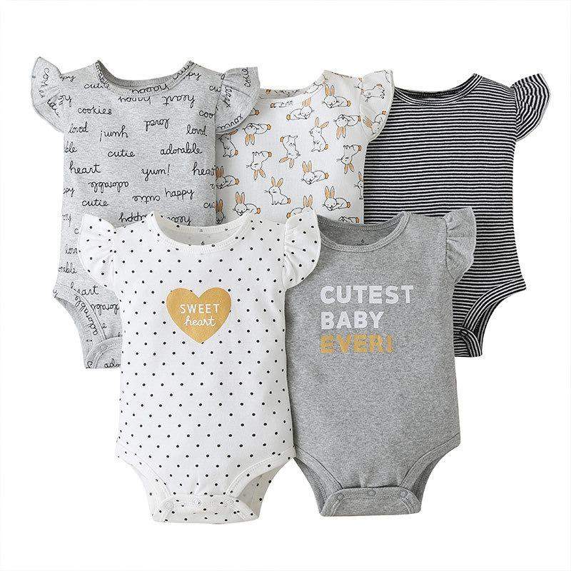 Kit 5 Bodys Manga Curta Bebê Unisex 100% algodão